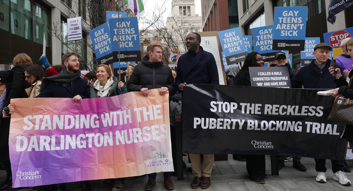 Campaigners claim the government’s proposed trial of puberty blockers – on children as young as eight – is ethical, safe and reversible. Those sharing their experiences at the #StopTheTrial protest had a very different story to tell, reports Holly Baines