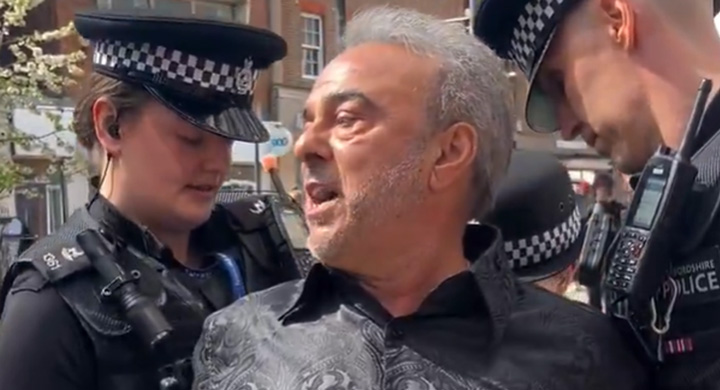 He was, however, then suddenly approached by police who arrested him on suspicion of public order and hate-related offences.